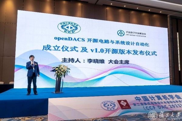 CCF DAC2021大会主席、中科院计算所研究员李晓维主持该项目成立仪式及v1.0开源版本发布仪式”。
