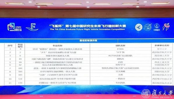 这是复旦大学航空航天系首次同时获得大赛全国一等奖及最佳实物演示奖,复旦大学摘得本届奖项“大满贯”!参赛筹备过程中,航空航天系积极组织师生参赛,比赛成绩的取得同样离不开研究生院的大力支持。