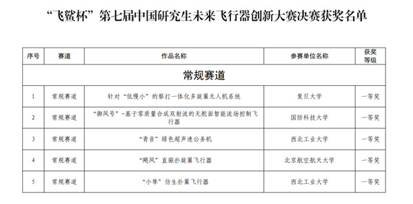 11月20至21日,由复旦大学航空航天系艾剑良教授指导、复旦大学FDAA团队开发的,针对“低慢小”的察打一体化多旋翼无人机系统项目,在“飞鲨杯”第七届中国研究生未来飞行器创新大赛中荣获全国一等奖、最佳实物演示奖,复旦大学还荣获优秀组织奖。