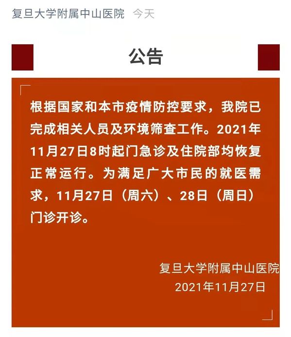 11月25日,上海市新增3例新冠肺炎本土确诊病例。根据国家和本市疫情防控要求,本市多家医院落实相关人员及环境筛查,暂停门急诊医疗服务,其中就包括我校相关附属医院。