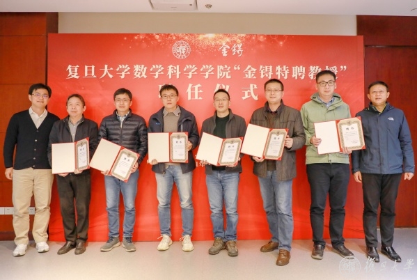 随后,王立峰、陈猛向入选“金锝特聘教授”六位教师颁发聘任证书并合影留念。