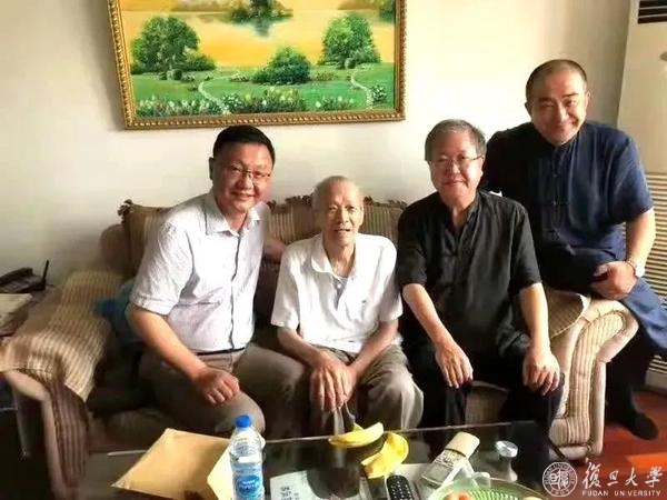 王雷泉教授(右二)与李天纲教授(左一)一同看望胡景锺教授