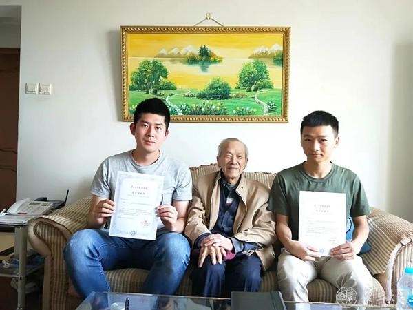 胡景锺与看望他的“桂海奖学金”获奖同学在一起