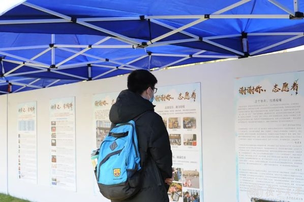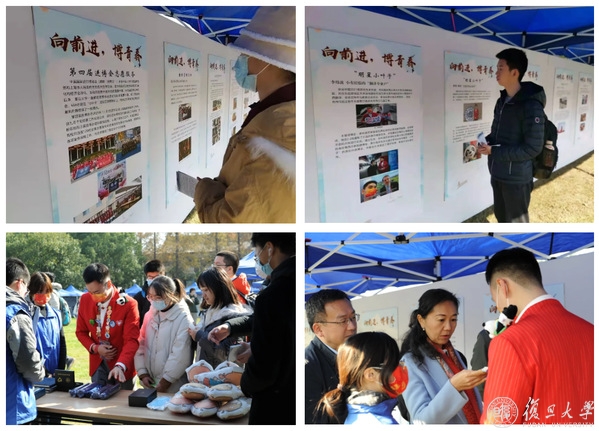 活动现场,同学们热情高涨。复旦大学青年志愿服务总队的介绍、进博会等优秀项目分享、二级青志队特色活动、志愿者个人及集体获奖情况、江湾疫情防控特别展览等一块块展板凝结着青年志愿者们奉献青春力量的美好回忆,展现了志愿者的风采。