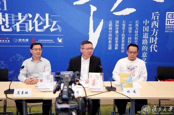 今年是“思想者论坛”启航的第五年,也是受疫情影响后的首次线下论坛。本届论坛为期一天,以“后西方世界:中国道路的意义”为主题,邀请到包括复旦大学文科资深教授姜义华、美国哥伦比亚大学可持续发展中心主任杰弗里·萨克斯、前英国剑桥大学政治和国际研究系高级研究员马丁·雅克、中国人民大学国际关系学院教授金灿荣、复旦大学中国研究院研究员李世默、《观察者网》总编辑金仲伟、清华大学国际传播研究中心教授李希光、 纽约大学比较文学系教授张旭东、复旦大学网络空间国际治理研究基地主任沈逸在内的三十余位海内外专家学者,通过线下参与、实时连线、视频参会等多种形式,围绕“后西方时代:中国模式与中国学”“后西方时代:中国与新世界秩序”“世界互联网:新空间与新故事”“中国互联网:新主流与新挑战”四个议题,展开了深入的交流与讨论。