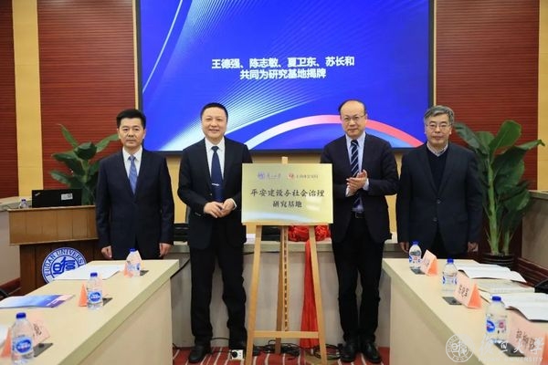随后,王德强和陈志敏分别代表双方签署合作框架协议书。王德强、陈志敏、夏卫东、苏长和共同为上海市公安局-复旦大学“平安建设与社会治理研究基地”揭牌。夏卫东介绍了研究基地理事会和研究团队组成情况。