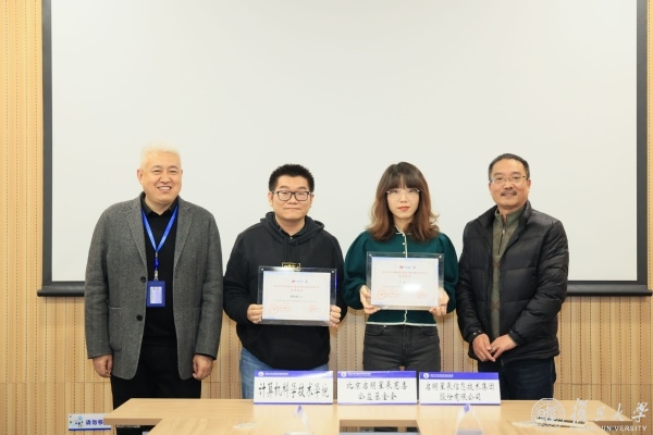 受疫情影响,启明星辰方面委托曹袖作为代表,与王新一起为获奖学生颁奖。王新表达了对启明星辰公司的感谢,并勉励同学们接续奋斗,争创佳绩。