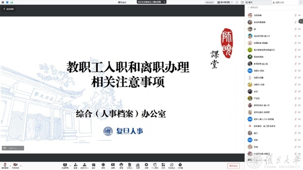 12月14日下午,第三期“师晓”课堂通过线上视频会议开讲,学校院系、机关、附直属单位120余位人事秘书参与了培训。