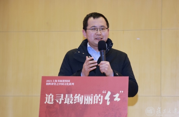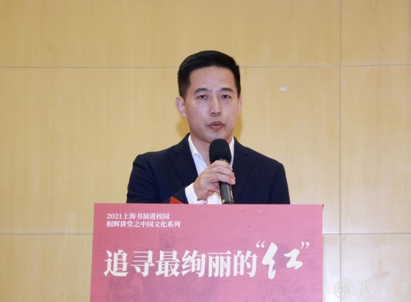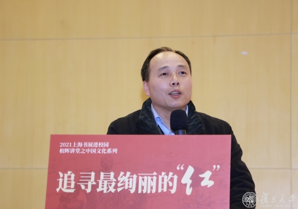 12月25日下午,复旦大学相辉讲堂举办追寻最绚丽的“红”——龙华英烈画传系列丛书进校园活动。本次活动由中共上海市委党史研究室、上海书展指委会办公室指导,龙华烈士陵园(龙华烈士纪念馆)、上海人民出版社、复旦大学党委研究生工作部、悦悦图书主办。中共上海市委党史研究室副主任唐洪涛、复旦大学党委副书记尹冬梅、上海市委宣传部印发处处长曾原、龙华烈士纪念馆党委书记左大鹏、复旦大学党委研究生工作部部长罗英华出席本次活动。