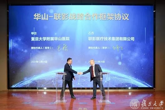 仪式上,宝山区人民政府与华山医院签订“华山-宝山”医联体合作框架协议,以华山医院一体化管理为契机,组建“华山宝山”紧密型医联体,依托华山品牌优势,强化区域医疗中心辐射作用,实现医联体内管理和服务的紧密联系和全面对接,提升宝山区市民健康服务水平。华山医院同时与联影医疗技术集团有限公司签订战略合作框架协议,以临床需求为导向,推动产学研医紧密协作,助力华山医院建设国家医学中心。