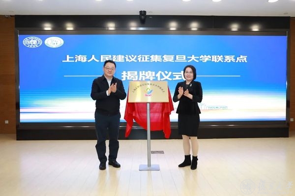 周亚明、上海市信访办副主任张俐蓉共同为“上海人民建议征集复旦大学联系点”揭牌。
