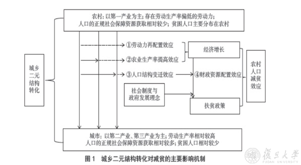 文章认为减贫是新中国成立以来我国现代化进程的重大主题。我国的减贫历程呈现出三个特征事实:减贫在全球范围取得了“奇迹般”的成就,减贫成就主要发生在改革开放后的高增长阶段,减贫历程与城乡二元结构转化过程相伴随。为此应在二元结构转化、经济增长和减贫成就之间形成逻辑内洽的分析框架。在逻辑推演层面,二元结构转化通过劳动力再配置效应、农业生产率提高效应、人口结构变迁效应、财政资源配置效应影响农村减贫,前两者意味着经济增长,后两者则体现为扶贫政策,经济增长和扶贫政策相结合是形成减贫绩效的主要原因。二元结构转化影响减贫的四种效应能够得到中国经验证据的支持,中国的社会主义制度及改革开放后的经济体制转型为效应发挥提供了制度基础。2020年之后,中国减贫战略将进入“下半程”,即依靠常规方式和长效机制构建来解决城乡相对贫困问题,这在发展思路和政策取向上需要推动减贫战略与二元结构转化的再衔接。