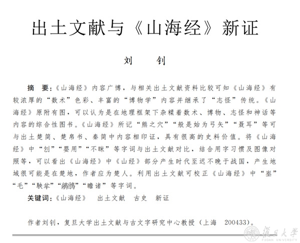 《出土文献与〈山海经〉新证》,刊发于《中国社会科学》2021年第1期。该文为《中国社会科学文摘》2021年第3期一整页摘要,并收入由宁镇疆、高晓军主编的《先秦古史研究论文写作:案例与方法》,上海大学出版社2021年11月版。