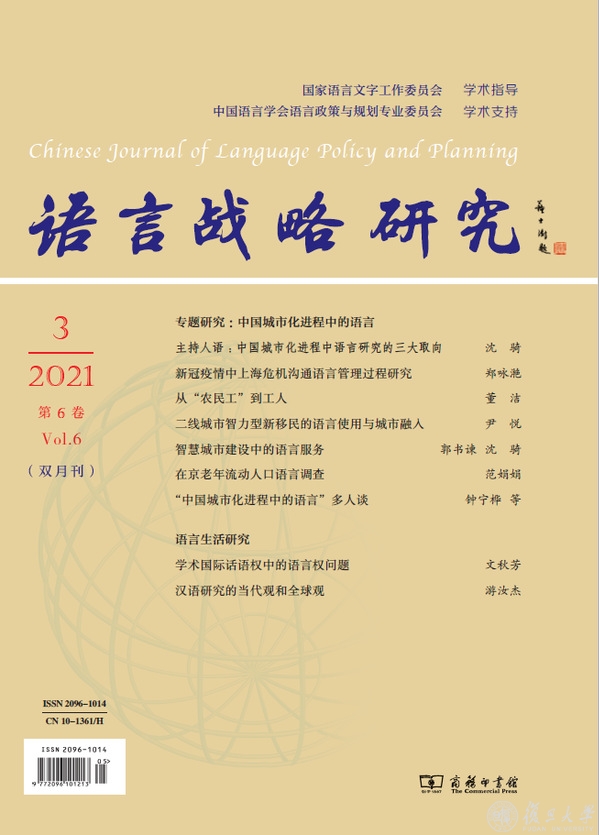 《汉语研究的当代观和全球观》刊发于《语言战略研究》2021年第3期,《高等学校文科学术文摘》2021年第5期转载,入选“上海市社联2021年度推介论文”。