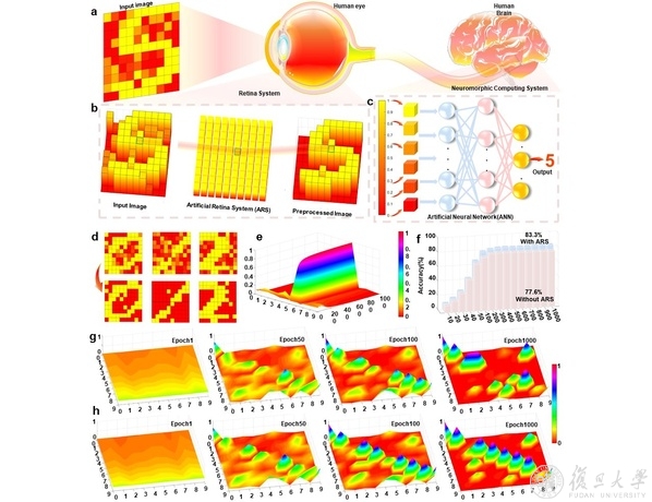 图3. 利用人工视网膜器件实现的图像预处理和识别功能