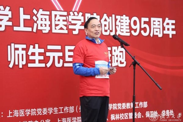 复旦大学校长、党委副书记,上海医学院院长金力为比赛鸣枪发令