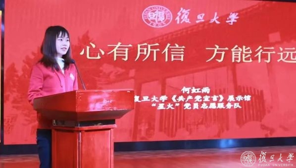 自从担任博讲团讲师,“磨课”——成为何虹雨专业学习之余的日常。每次宣讲前她都要反复打磨课程,最花心思的便是根据听众的不同来调整宣讲内容、修改PPT,力求每一次的宣讲都能达到最佳效果。何虹雨认为,理论宣讲不是生硬的知识科普和思想灌输,只有了解听众、走进听众、与他们互动,才能塑造鲜活的理论,给听众埋下理性和信仰的种子。“心有所信,方能行远”,同时作为一名“星火”队员,习近平总书记在回信中的这句谆谆勉励也成为何虹雨理论宣讲的行动箴言。