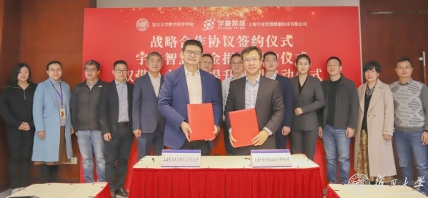 1月7日上午,复旦大学数学科学学院与上海宇量智慧数据有限公司战略合作协议签订仪式暨数学科学学院宇量智慧基金捐赠签约仪式、复旦大学数学科学学院双带头人双向提升计划启动仪式在光华楼东主楼2201隆重举行。上海宇量智慧数据技术有限公司总裁李江城、副总裁赵波、人事总监潘淼、销售总监高雪松,对外联络与发展处处长、上海复旦大学教育发展基金会秘书长杨增国,数学科学学院党政班子成员和教师代表出席。数学科学学院党委副书记刘建峰主持仪式。