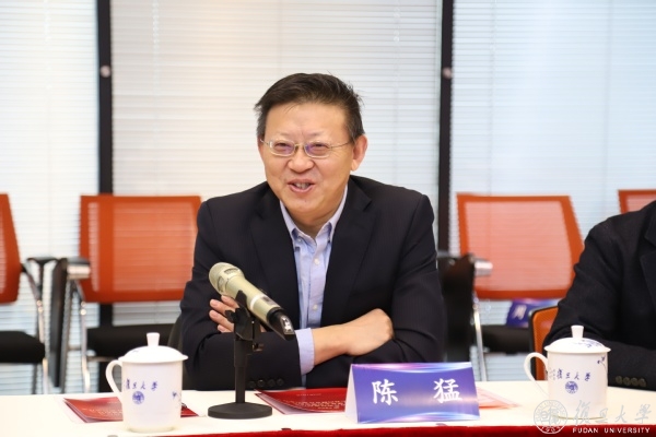 会上,数学科学学院院长陈猛代表学院向李江城总裁一行表示热烈欢迎,对双方签署战略合作协议表示热烈祝贺,对公司慷慨捐资支持复旦大学数学学科发展的崇高善举表示诚挚感谢。他指出,复旦大学数学科学学院宇量智慧基金的设立,必将有力助推复旦数学学科建设和学院党的建设,战略合作协议的签署更标志着双方合作翻开崭新篇章,我们将与宇量智慧一道,推动产、学、研深度融合,为我国教育事业和金融科技的发展进步勇立新功。
