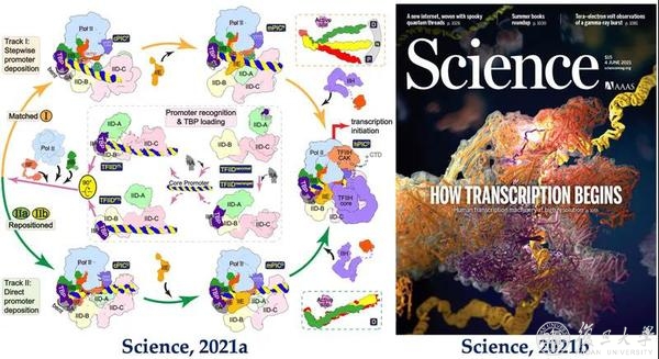 上述成果以2篇研究长文发表于《科学》杂志(Science 372, eaba8490;Science 372, eabg0635),其中一篇被Science杂志选为封面文章,题目为“转录如何起始”。