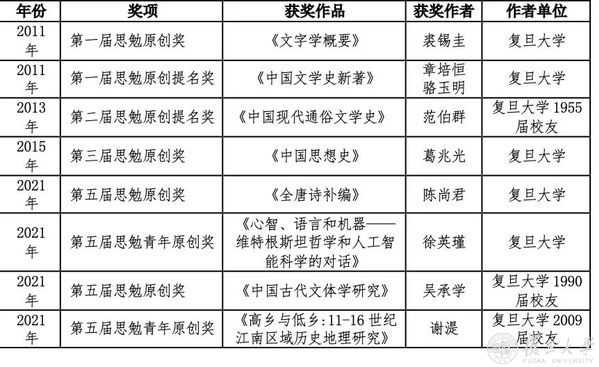 除了上述两位获奖者,让我们一起来看看历届思勉原创奖获奖名单中都有哪些复旦人: