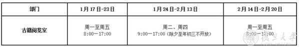 2022年寒假光华楼古籍阅览室开放时间