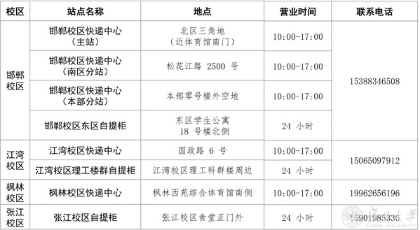 春节放假期间(1月31日—2月6日)春节期间急件领取可致电联系:15388346508(邯郸校区);15065097912(江湾校区);19962656196(枫林校区);15901985336(张江校区)。