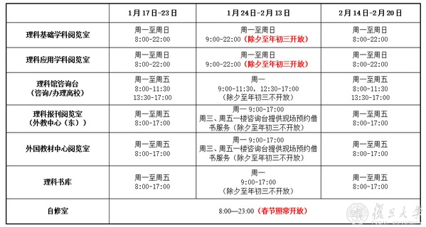 2022年寒假理科图书馆开放时间