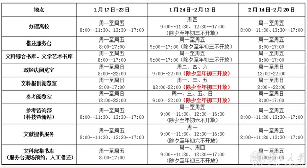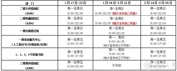2022年寒假文科图书馆开放时间