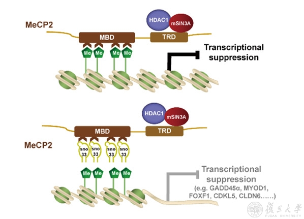 研究发现SNORD33可阻碍甲基化结合蛋白MeCP2与其靶基因的结合,从而释放MeCP2的转录抑制活性,促进凋亡相关基因表达,增加三阴性乳腺癌细胞对铂类的敏感性。