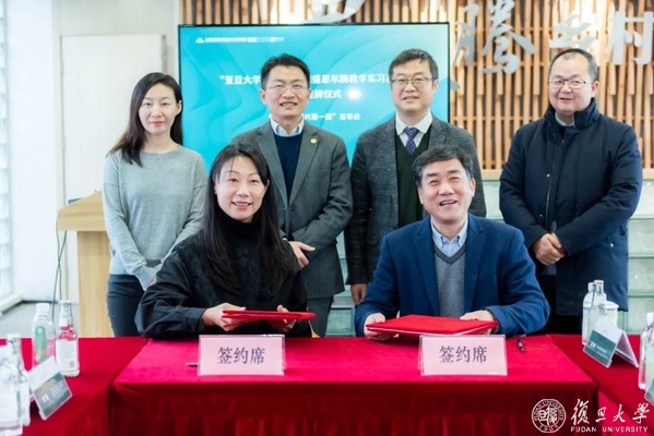 1月10日下午,复旦大学经济学院与国盛思尔腾在奉贤区吴房村举办共建本科教学实践基地签约和揭牌仪式,参加仪式的有国盛长三角基金董事长、思尔腾学院院长孙烽,思尔腾集团董事长、思尔腾学院常务副院长石强,思尔腾集团总经理、思尔腾学院副院长袁可可及复旦大学经济学院党委书记李粤江,复旦大学经济学院本科教学院长田素华,复旦大学经济学院党委副书记高舒等。国盛长三角基金董事长、思尔腾学院院长孙烽和复旦大学经济学院党委书记李粤江分别致辞,思尔腾集团总经理、思尔腾学院副院长袁可可和复旦大学经济学院本科教学院长田素华代表双方签订共建协议。