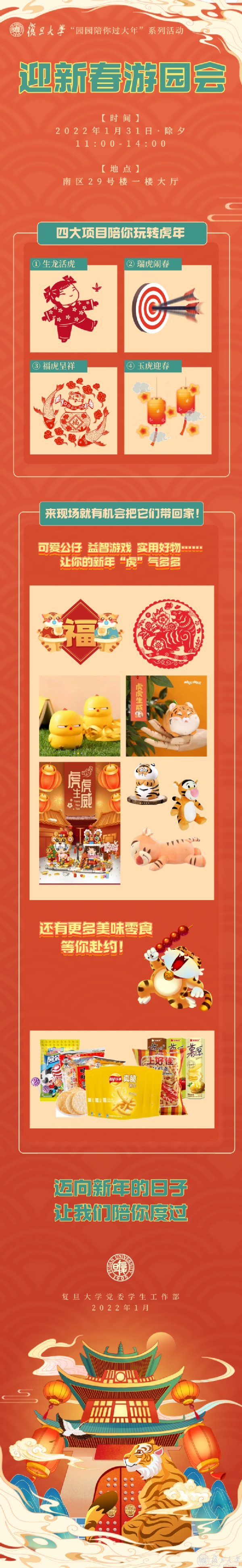 今年,不少复旦学子选择留校过年。各院系面向留校学生推出了系列精彩暖心的寒假和新春活动,来Pick你喜欢的那一款吧!