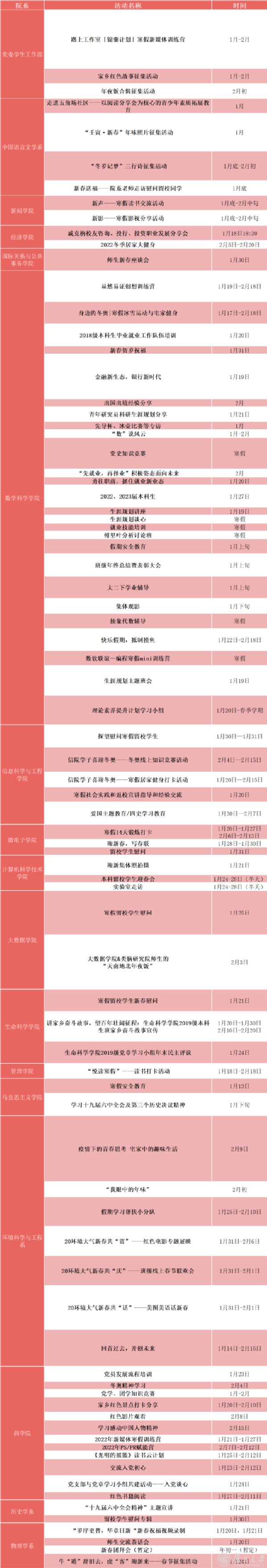 寒假已经开启,春节徐徐将至,我们为大家搜集了一波寒假/新春活动安排,希望你不论返乡度假,还是留校过年,每一天都过得暖心与精彩。