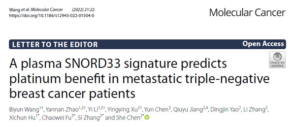 揭示SNORD33调控三阴性乳腺癌铂类方案耐药“原因”