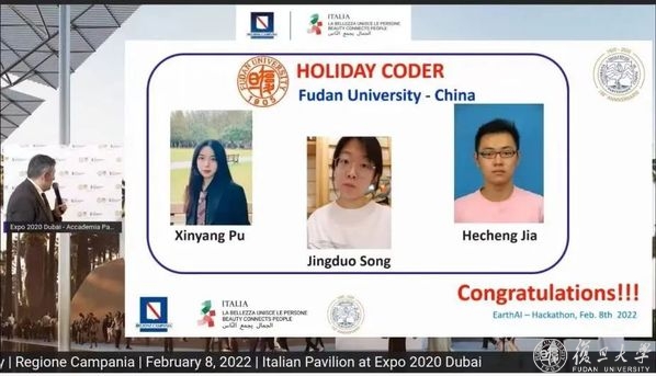 2月8日,迪拜世博会Earth AI(地球观测人工智能技术)竞赛结果于线上直播公布,复旦大学Holiday Coder(假日程序员)团队荣获冠军。