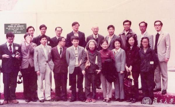 1983年3月22日,洛杉矶美国物理学年会上,谢希德(前排右5)、黄昆(后排右5)两位先生与留学人员合影(李炳宗,后排右1)