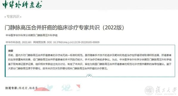 在全国爱肝日前夕,国内首个《门静脉高压合并肝癌的临床诊疗专家共识(2022版)》以优先出版方式在线发表于外科权威杂志《中华外科杂志》,为门静脉高压合并肝癌患者的规范化诊疗提供最新的指导性建议。