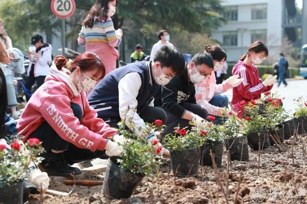 今年,为迎接“3·12”植树节,学校还在第四教学楼前举办“瑰丽青春,努力前程”植树节主题活动,组织学生在校园内亲手种植玫瑰花海,在毕业季收获,传递耕耘与感恩,引导学生在劳动参与中体验耕耘与收获的意义,以劳育人,以美化人。