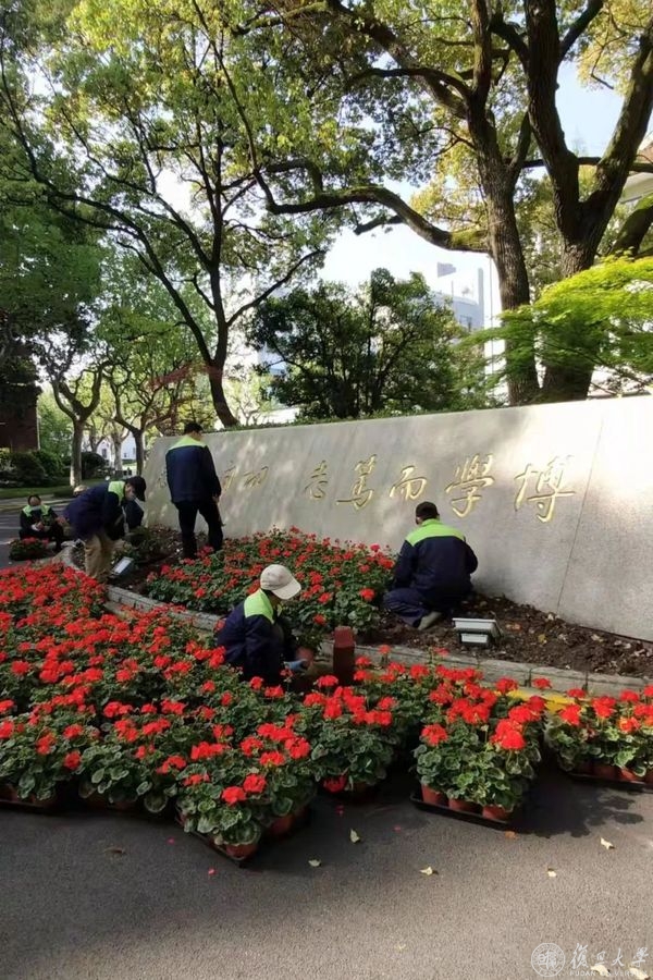 今天的复旦,一年四季鲜花不断,仅邯郸本部草木品种超过100种。每个季度竞相绽放的鲜花,就有十多个品种。哪怕是人烟稀少的地方,一年也至少要换四季花,而主要区域诸如毛像、光华楼等,有时碰到节假日,还要再换。