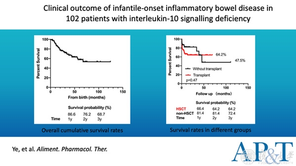国家儿童医学中心、复旦大学附属儿科医院消化科主任黄瑛教授团队在国际权威杂志 Alimentary Pharmacology & Therapeutics 以论著形式在线发表题为“Clinical outcome of infantile-onset inflammatory bowel disease in 102 patients with interleukin-10 signalling deficiency”的论文。本研究是目前全球范围内纳入IL-10通路缺陷患儿数目最多的单中心研究,同时在国际上首次报道了IL-10 通路缺陷患儿接受异基因造血干细胞移植治疗后的总体生存率。