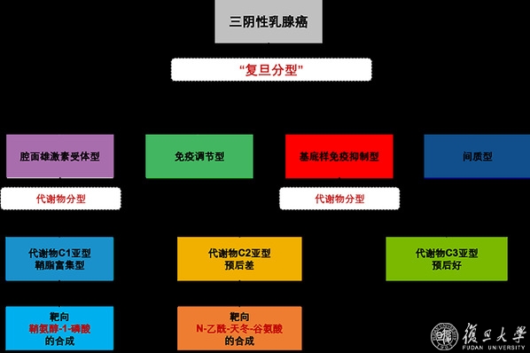 近期,复旦大学附属肿瘤医院乳腺外科邵志敏教授、江一舟教授领衔团队成功绘制出当前世界上最大规模的三阴性乳腺癌代谢物图谱,优化了既往分型标准,为三阴性乳腺癌的精准个体化治疗提供新方向;作为三阴性乳腺癌“复旦分型”研究的延续,研究团队还针对目前疗效最差的两个三阴性乳腺癌亚型,提出对代谢通路中的关键代谢物鞘氨醇-1-磷酸和N-乙酰-天冬-谷氨酸的合成进行抑制,有望成为此类乳腺癌的精准靶向治疗的潜在策略。国际权威期刊 Cell Research 于日前刊登了这项重要成果。