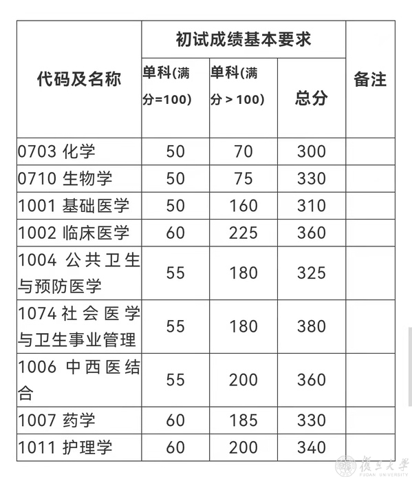 04专业学位初试成绩基本要求(上海医学院)