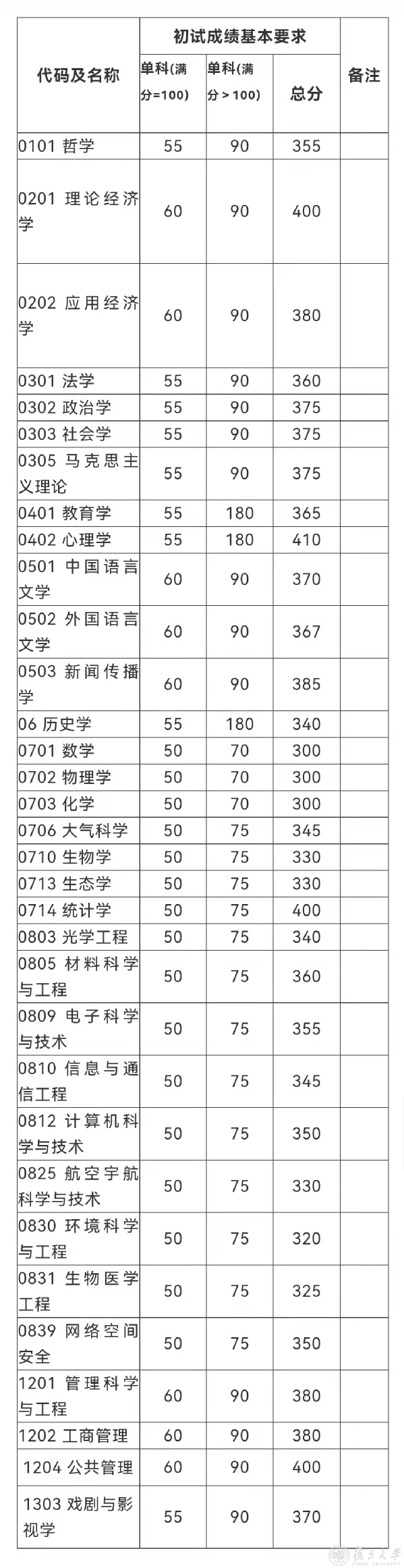 01学术学位初试成绩基本要求(不含上海医学院)