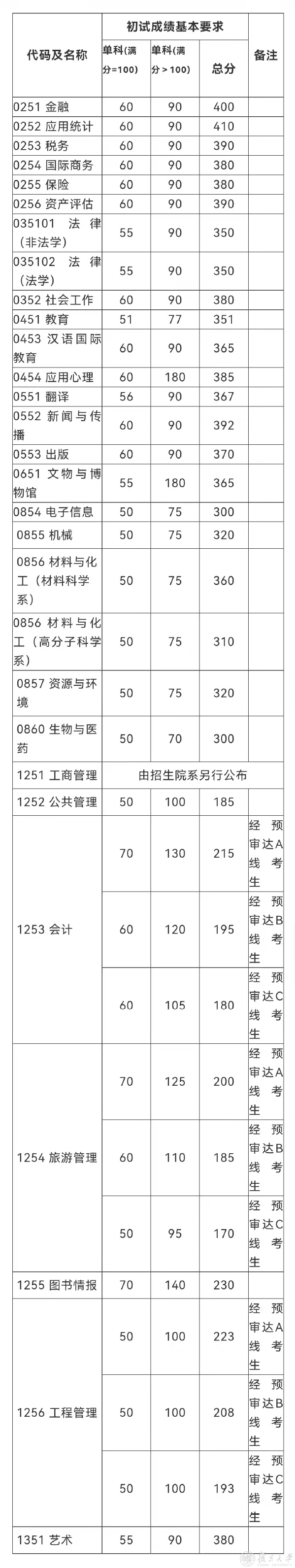 02专业学位初试成绩基本要求(不含上海医学院)
