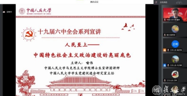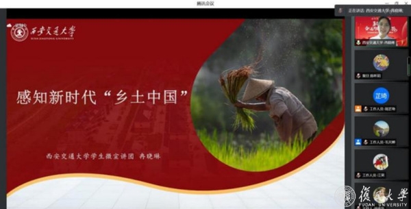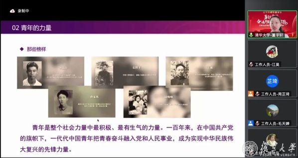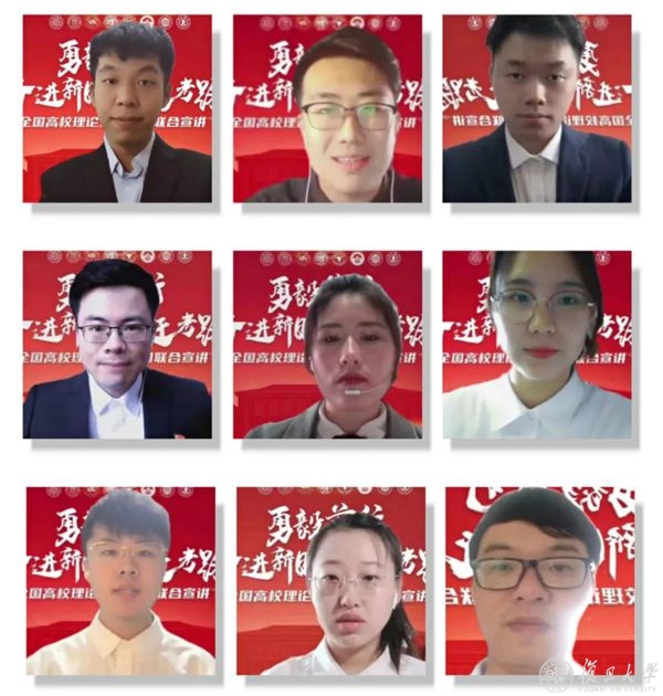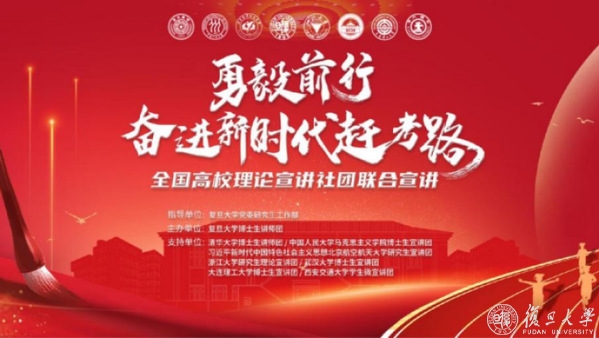 在这场由复旦大学博士生讲师团牵头主办的全国高校理论宣讲社团联合宣讲活动中,清华大学、中国人民大学、北京航空航天大学、浙江大学、武汉大学、大连理工大学、西安交通大学等七所高校的优秀学子共同参与,用理论宣讲的形式践行“请党放心,强国有我”的铿锵誓言,1.3万余人次在线观看宣讲。复旦大学党委副书记尹冬梅出席活动并致辞。