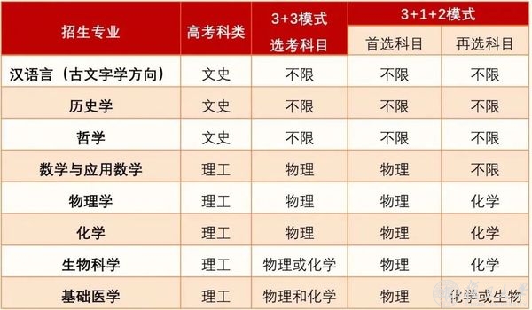 2.数学与应用数学专业考核数学,物理学专业考核物理,化学专业考核化学,生物科学、基础医学专业考核数理化综合。