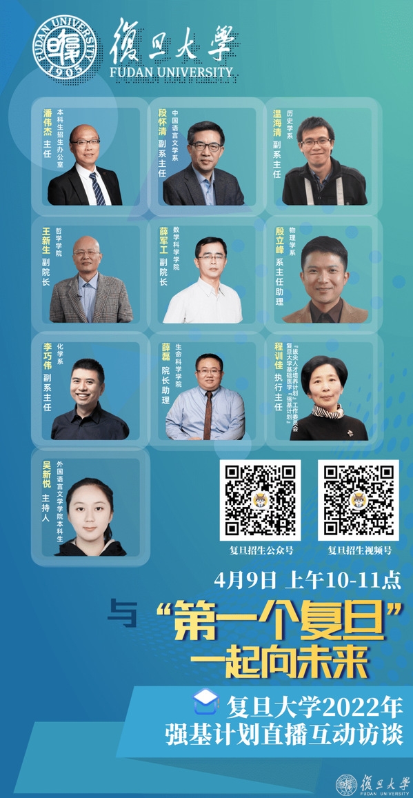 符合报名条件的考生可于4月10日至4月30日登录复旦大学强基计划报名平台,按要求准确、完整地完成网上报名。