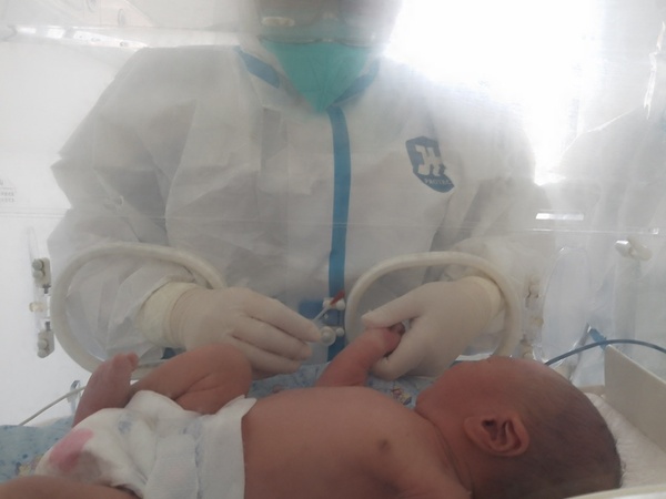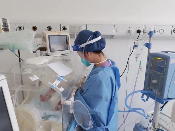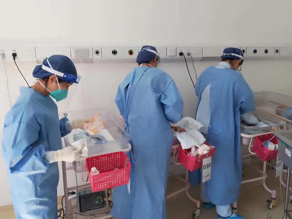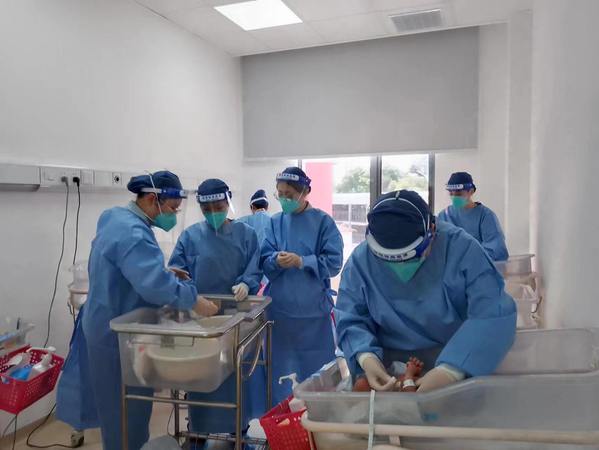 新生儿科主任曹云带领医护团队准备病房布置及物资,从第一台暖箱、第一台呼吸机,到第一台监护仪、输液泵、光疗仪,一个个新生儿救治单元和床单位迅速建立。在医务部柳龚堡主任、护理部顾莺主任、院感科王传清主任的通力合作及帮助下,迅速组建医护团队,制定收住院及出院流程、病房管理制度,各项工作逐渐步入正轨。3月30日收治了第一例新冠阳性母亲分娩的新生儿。