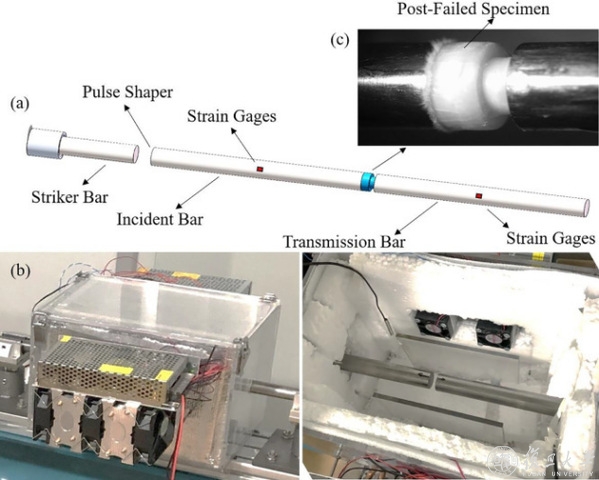 航空航天系宋振华课题组以冰在大应变率下的动态剪切力学性能为研究目标,设计了可用于定量分析冰剪切失效的纤维增强帽型试件,并利用霍普金森压杆技术在低温环境下对其开展了大应变率动态剪切力学性能测试。在此基础上建立了冰在复杂应力状态下综合考虑主应力和剪切失效的Mohr-Coulomb失效判定准则,为完善相关冰材料的失效判定和本构模型建立提供了新思路和理论依据。该工作由复旦大学航空航天系宋振华课题组独立完成,相关成果以论文形式发表于国际冲击动力学顶级学术期刊INT J IMPACT ENG上。