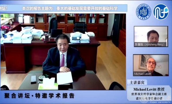 5月8日,复旦大学高分子科学系、复杂体系多尺度研究院联合举办聚合讲坛第九辑特邀学术报告,迈克尔·莱维特应邀做题为“重大的基础发现需要开放的基础科学”的报告,报告由复旦大学校长、中国科学院院士金力教授主持,逾万人次在线参加了此次活动。